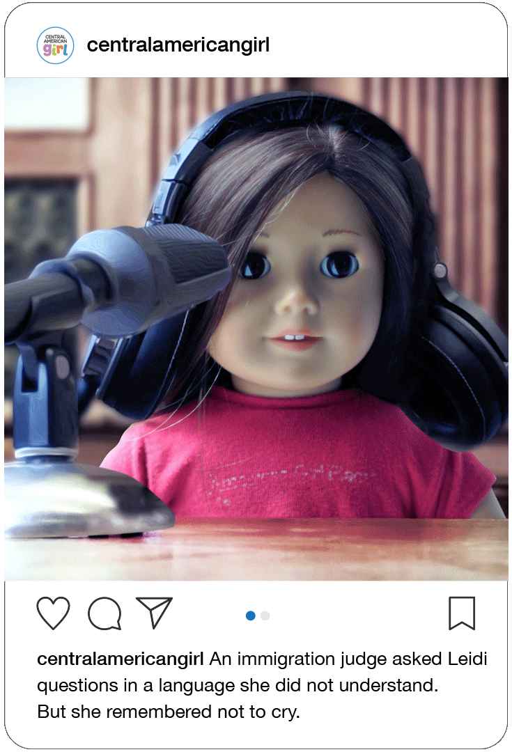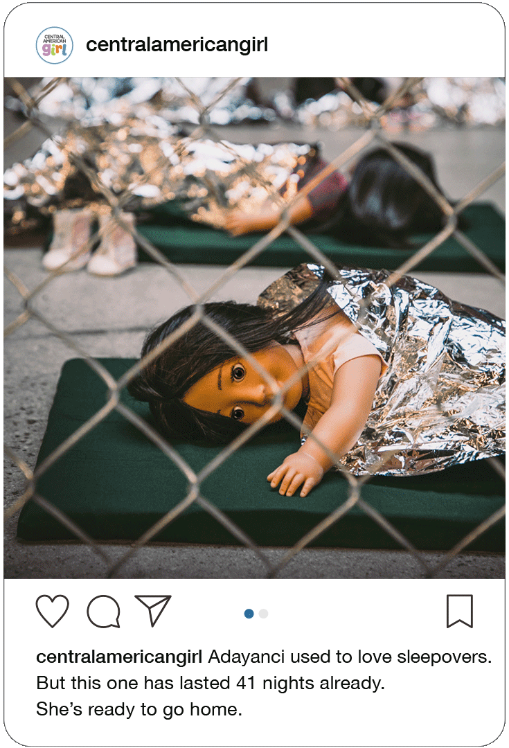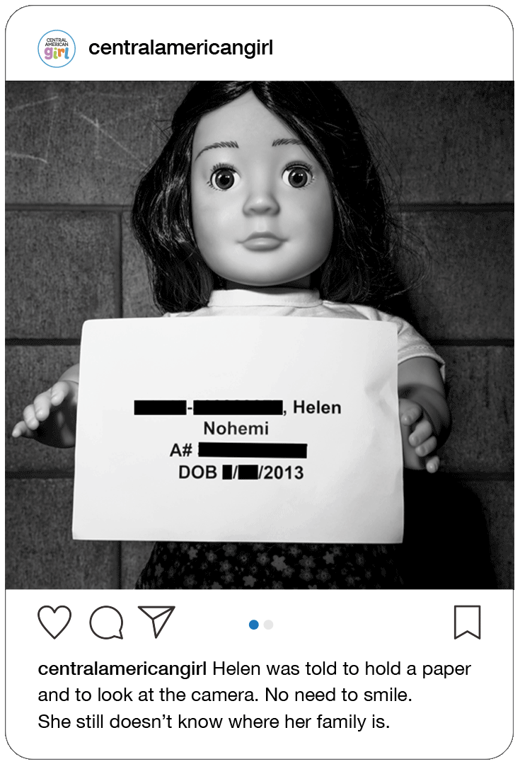 We took inspiration by the wholesome storytelling style from a popular doll brand and we created four doll characters based on four real girls from Guatemala, Honduras, El Salvador, who got separated from their families at the border: Adayanci Pérez, Daneli Villanueva, Leidi Monroy and Helen Godinez. We were able to keep track and document their journeys through the news and through the report of non-profit organizations that were helping these families reunite. We created stories like their trip from their country of origin to the US border, the time they got separated from their families, their experiences at the detention center, the immigration courts, etc. So instead of the happy, picture-perfect scenes you expect to see from a doll, you learn about the harsh reality that these real children had to face.
